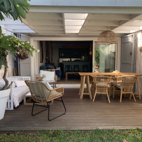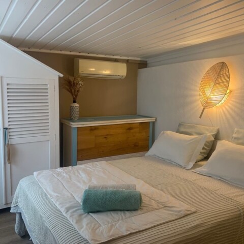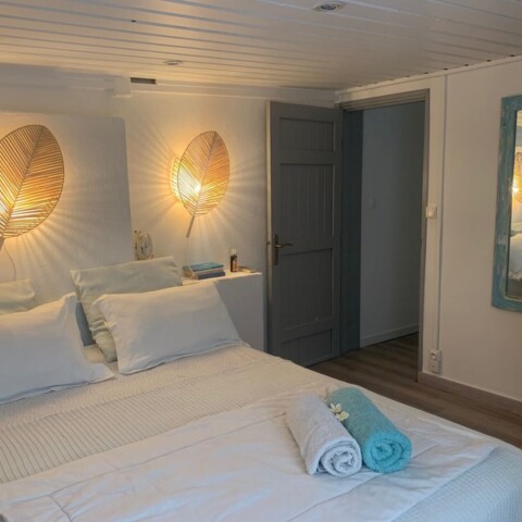« Au gré d’Emma » est une adorable petite maison style cabane de bord de mer à 2 minutes à pied du lagon de Grand Fond dans un quartier très calme. Ce bien atypique vous enchantera par son côté très cosy et cocooning. Celui-ci est très joliment agencé et fonctionnel. Il peut accueillir 4 personnes. Les deux chambres sont très agréables et la literie est excellente. Vous aurez à disposition une pergola intimiste à l’étage, ainsi qu’un petit jardin et sa terrasse pour une pause déjeuner ou détente. Située dans une petite rue en sable, vous n’aurez qu’à emprunter le petit chemin en face de la maison pour vous rendre à la plage en 2 minutes. Le lagon de Grand Fond regorge d’une belle biodiversité et vous n’aurez plus qu’à vous y plonger.