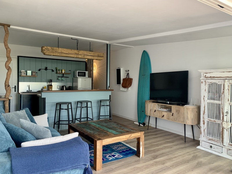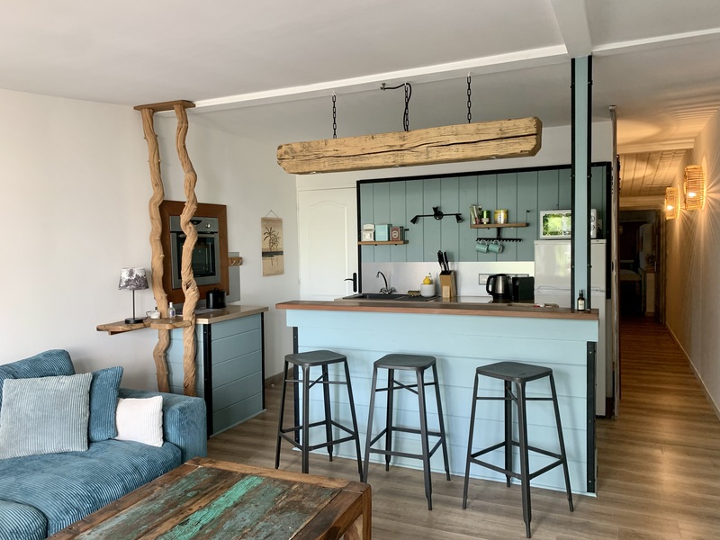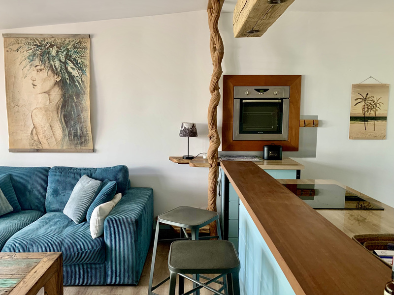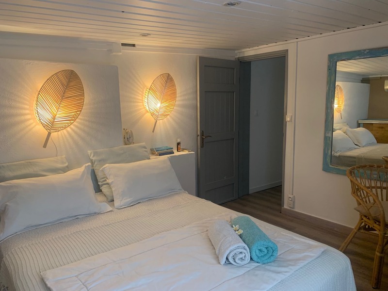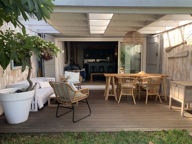 « Au gré d’Emma » est une adorable petite maison style cabane de bord de mer à 2 minutes à pied du lagon de Grand Fond dans un quartier très calme. Ce bien atypique vous enchantera par son côté très cosy et cocooning. Celui-ci est très joliment agencé et fonctionnel. Il peut accueillir 4 personnes. Les deux chambres sont très agréables et la literie est excellente. Vous aurez à disposition une pergola intimiste à l’étage, ainsi qu’un petit jardin et sa terrasse pour une pause déjeuner ou détente. Située dans une petite rue en sable, vous n’aurez qu’à emprunter le petit chemin en face de la maison pour vous rendre à la plage en 2 minutes. Le lagon de Grand Fond regorge d’une belle biodiversité et vous n’aurez plus qu’à vous y plonger.