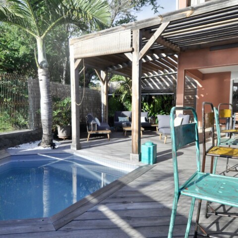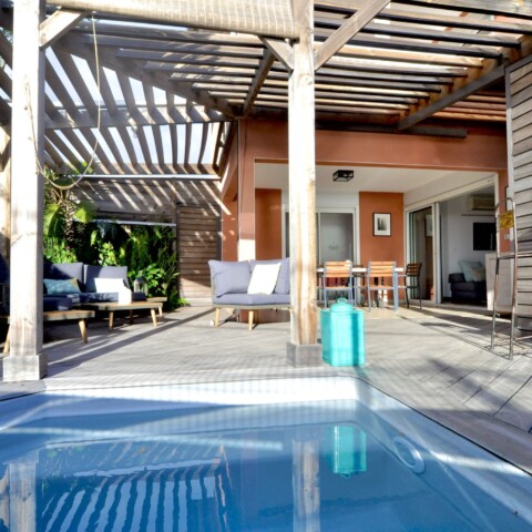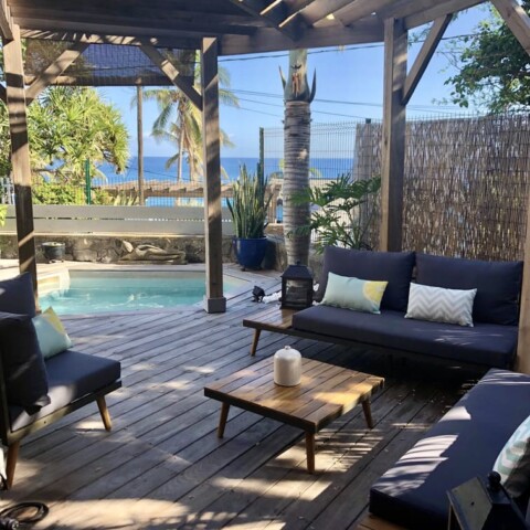« Bleu des Lames » est un merveilleux compromis si vous hésitez entre une petite maison ou un appartement. Cet agréable T3 est situé dans une petite résidence calme de 6 logements, dans Grand Fond à Saint Gilles les Bains. Son accès est totalement privatif ainsi que sa grande terrasse avec piscine qui est un vrai atout aux yeux de tous. Vous n’aurez aucun vis-à-vis. Le must de ce logement est sa vue sur l’océan puisqu’il est situé juste en face de la pointe des Aigrettes qui est un spot de surf. La vue est magique durant la période des baleines. Vous pourrez également vous rendre à pied au lagon, qui est à 2 pas et qui est autorisé à la baignade.