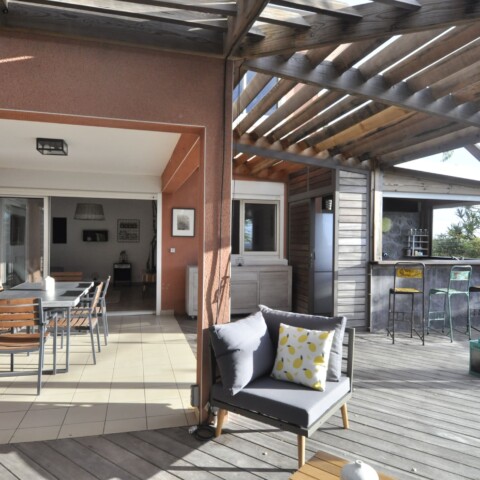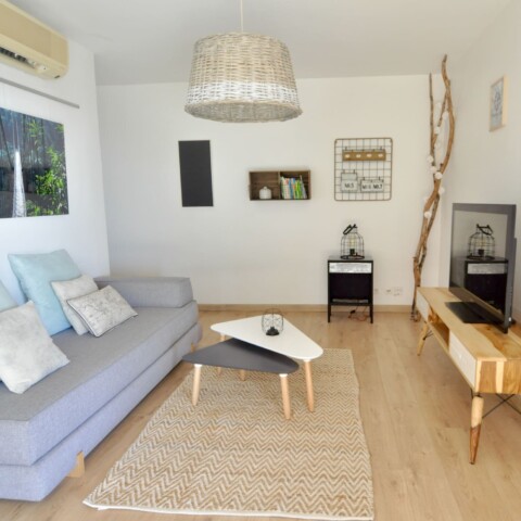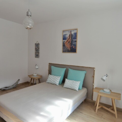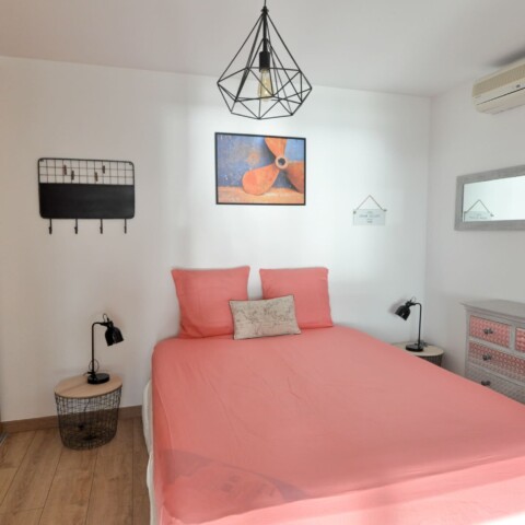 La petite particularité de ce bien réside dans le fait que la cuisine et son bar sont en extérieur. Alors Si vous souhaitez prendre vos cocktails face à la mer ce logement est fait pour vous. Vous disposerez de 2 chambres coquettes et climatisées, ainsi que d’une banquette 1 personne dans le séjour. De belles perspectives pour des vacances à tarif doux.